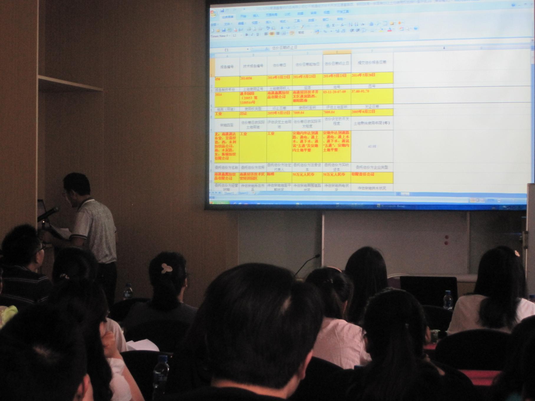 本次培训活动中,作为公司的评估部负责人对各分公司培训成员做了详尽的工作业务培训。授课过程中,大家专心听讲,认真做笔记。公司负责人沈总带头学习,各分公司培训成员学习热情都很高涨。授课老师王总、杨总首先从估价原则、估价程序、估价报告的格式、估价方法、估价报告的制作及《2013房地产估价基本术语标准》和《房地产估价报告评审标准》(试行)分别对房地产、土地估价报告进行了全面系统的解读;桑工在实际案例中演示讲解了EXCEL和WORD的交互使用,大大提升了工作效率;最后王主任对各分公司报送的估价报告中存在的问题、报告报送要求和土地估价报告备案有关事项进行了一一讲解,通过对各方面的基础培训,让各分公司成员及时掌握、正确理解,在以后的房地产估价报告中规范使用,提升培训成员的技术水平。