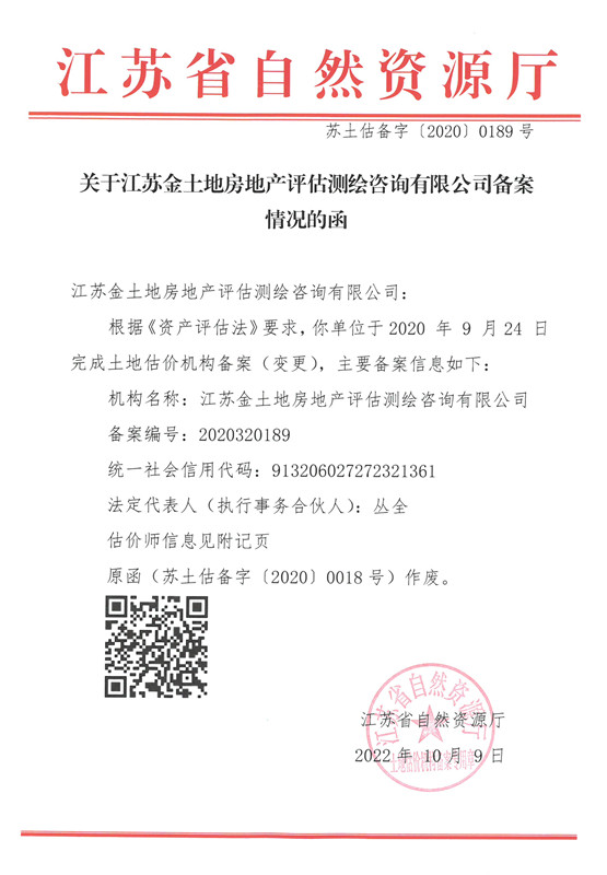 江苏省土地评估资质证书