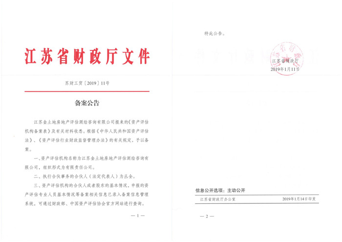 江苏省土地评估资质证书